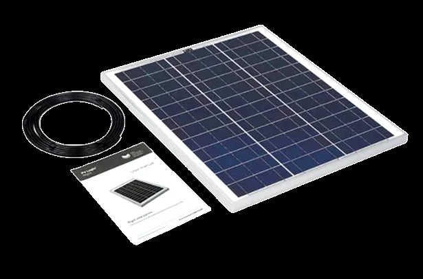 Three 15-watt 12-volt amorphous silicon solar modules make up the kit. After assembling the frame, you attach the three panels to it. A 45-watt output is provided by the three panels working together.